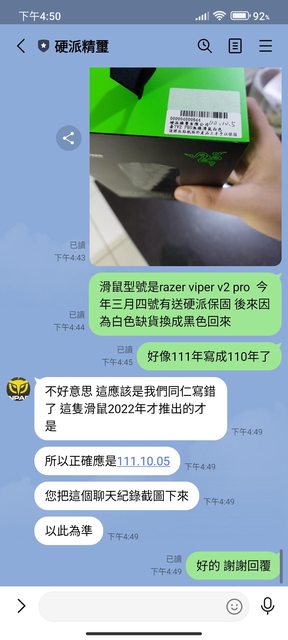 來 發票已遺失 但問過硬派可依照盒子上條碼給硬派出保