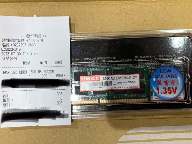 標題[賣/全國/皆可] UMAX DDR3L 1600 8G