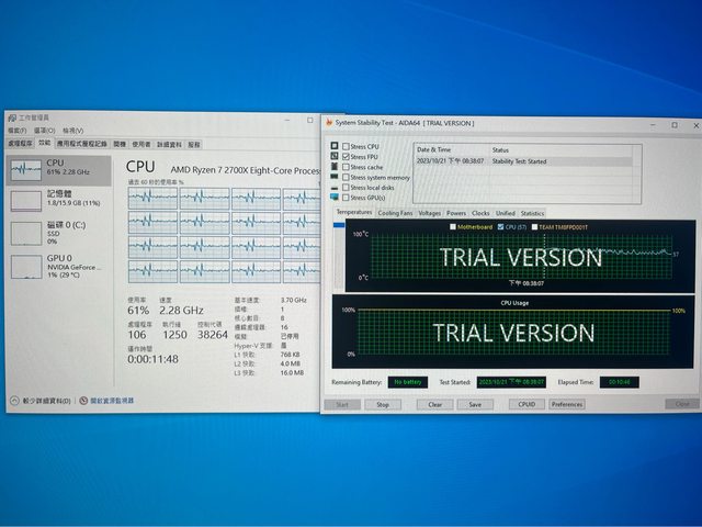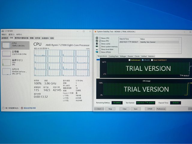 使用B450主機板在Aida64 燒機測試中