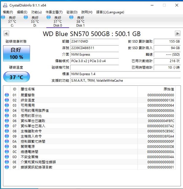 ◎硬體型號: WD SN570 500gb