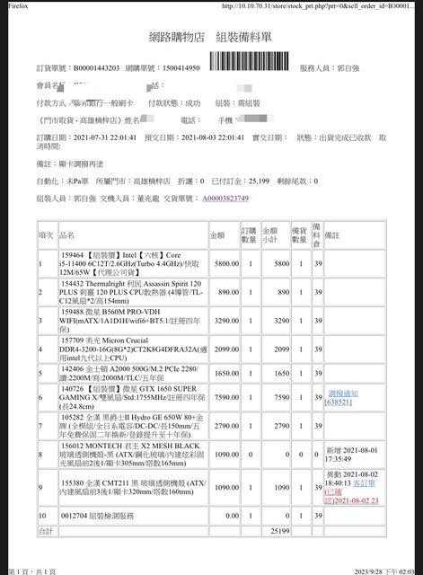 整台主機 2021/7/31月於高雄欣亞購入並請店家組裝,功能正常,配件完整