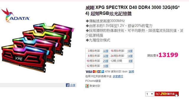 RAM:Adata XPG SPECTRIX D40 DDR4 3000 8G*4