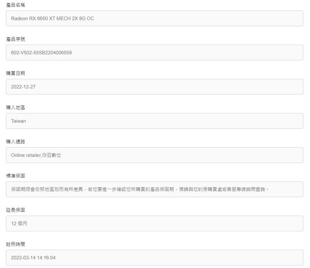 ◎硬體型號:MSI RX6650XT MECH 2X 8G (禁止販售未拆封之物品,贈品、獎品、RMA品