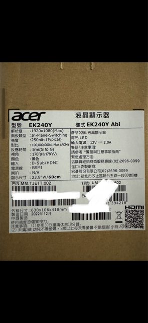 2.Acer EK240Y A 24吋 Full Hd螢幕