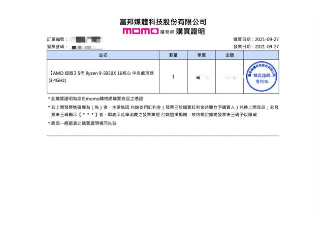110/09/27 於MOMO購入,盒裝完整,保固內。