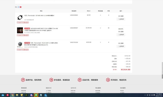 1. AMD 3700X CPU + 原廠風扇 $3300 2. ASUS PRIME X370-PRO 主機板 $1300 3. 美光 BALLISTIX DDR4 3000 16G X2 $2000 4. 利民(Thermalright)PA120 標準版 $750