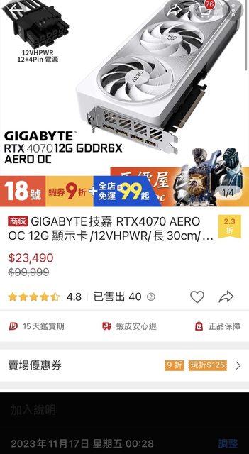 標題[賣/全國/皆可] 技嘉顯卡 RTX4070 AERO 白顯示卡