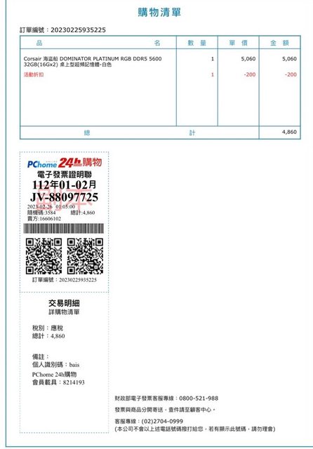 ◎硬體型號: Corsair Dominator Platinum RGB DDR5-5600 32gb(16gbx2) 白