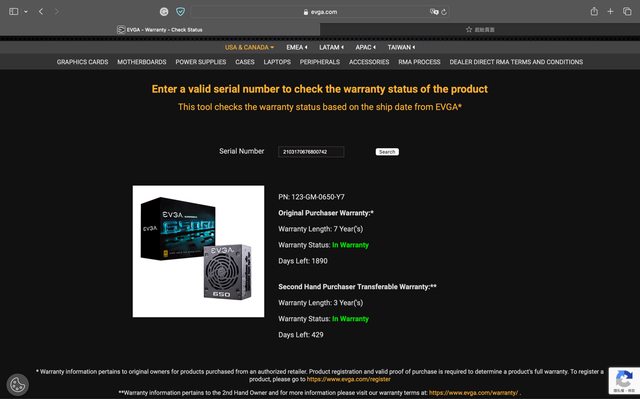 4. 八月份於臉書社團二手購入,前一手無註冊故以出廠日期查詢,保固至2029/1/19