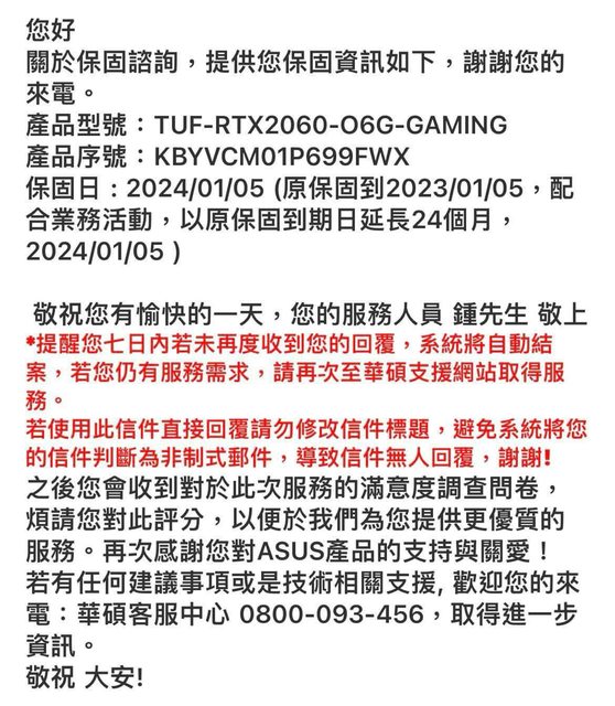 2. 六月份於臉書社團二手購入,已延長保固至2024/1/5