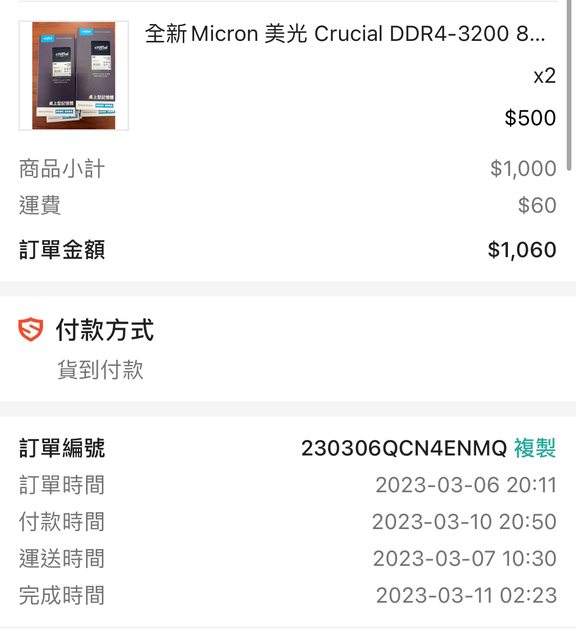 5. 美光 DDR4-3200 8g*2 終保有盒