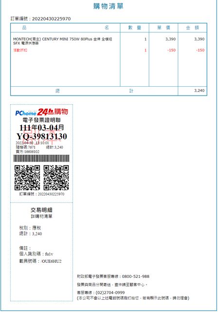 2022/04/30 PCHOME 購入