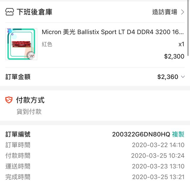 1) 2020-03-22於蝦皮購買