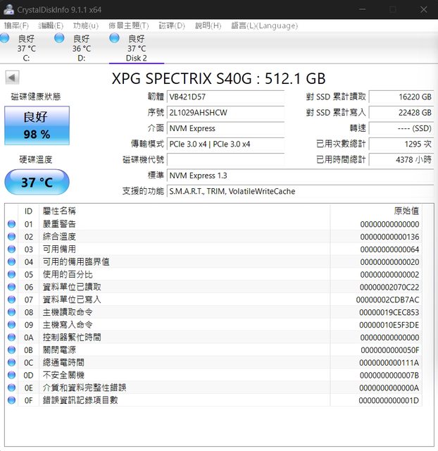 10.XPG Spectrix S40G 512GB M.2硬碟