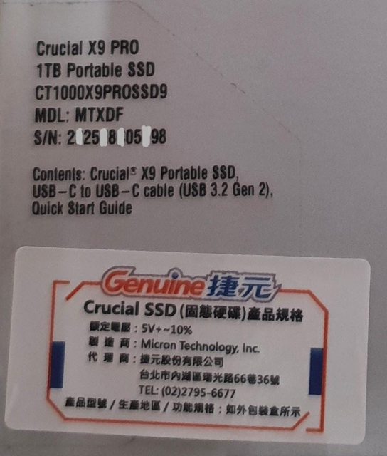 標題[賣/全國/皆可] 美光 X9 PRO 1TB 外接SSD硬碟