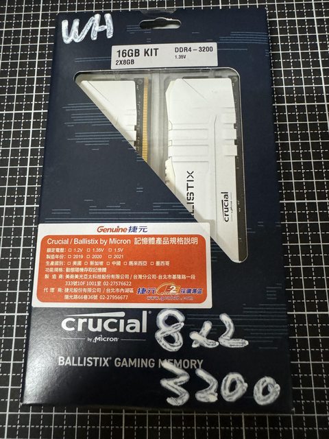 標題[賣/全國/皆可] 美光Ballistix 16GB DDR4-3200