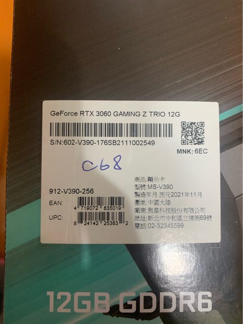 標題[賣 MSI 3060 GAMING Z TRIO 12G]