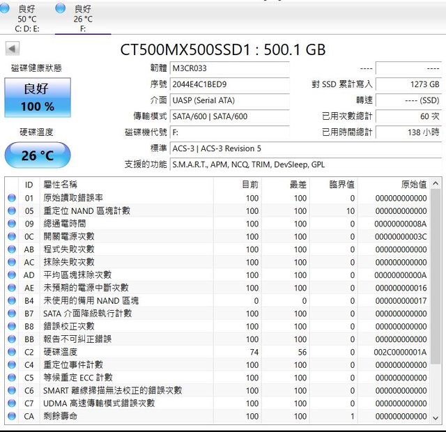 ◎硬體型號:1.MX500 500G ssd