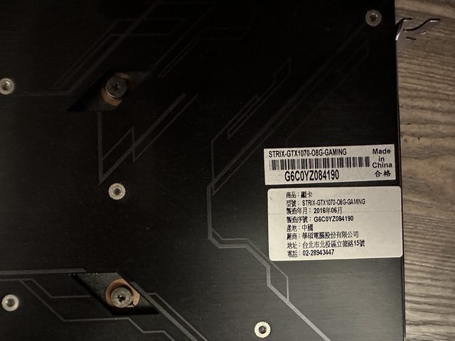 ◎硬體型號: Asus GTX1070-O8G