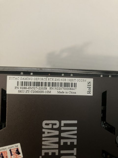 索泰2060 保固至2026-04-13 --> 證明請看圖片 MSI 1080 MS-V336 過保,個人保3天 ◎欲售價格: 2060 $3300 1080 $3200 ◎品樣狀況: 公司升級退下,網上及原價屋取得,無完整盒裝,2060品項9成新, 1080 過保,個人保3天 華碩2060只採郵局寄送,郵資$80,其餘一律採取全家郵寄,郵資60 ◎佐證資料: 2060-索泰