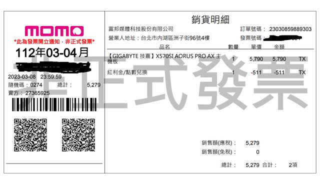 2. MOMO購物購買 2023/03/08 剛下機 原廠保固