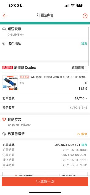 SN550購自原價屋蝦皮