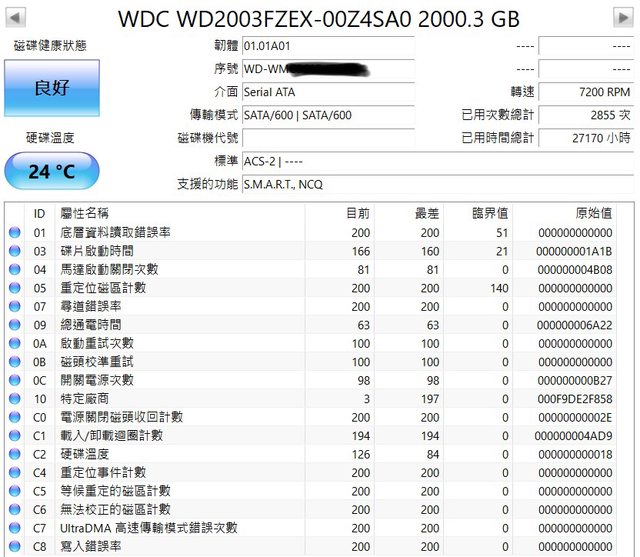 ◎硬體型號: WD 2T 黑標 3.5硬碟