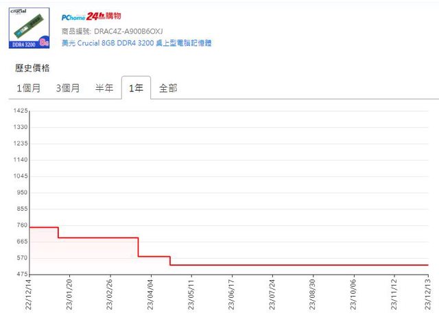 PCHOME 近一年的價格範圍