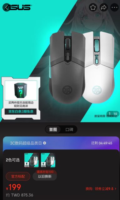 標題[賣/基隆/皆可] 華碩天選電競滑鼠 灰色