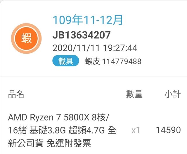 推 Koogeal: 賣5900X但是發票證明卻是5800X? 59.115.22.14 12/17 00:30