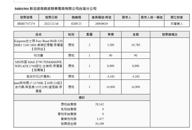 1. 2022/12/19 原價屋蝦皮商城購買,聯強代理商貨,升級換下