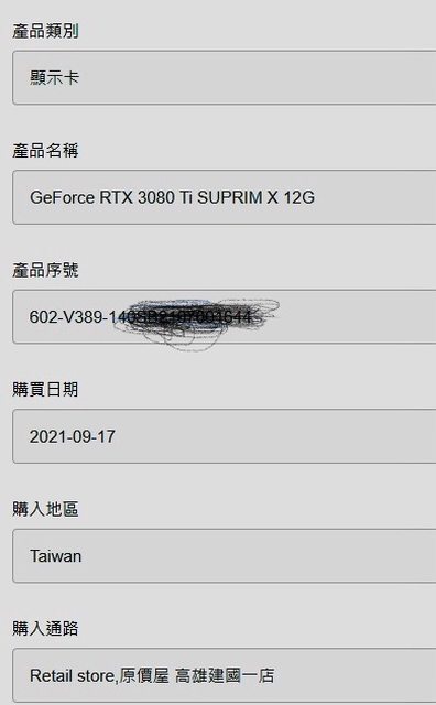 標題[賣/高雄/面交] MSI RTX 3080 Ti SUPRIM