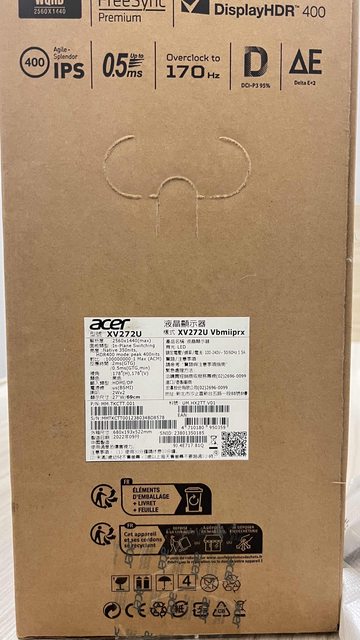 1.Acer XV272U V / Nitro 27吋2K HDR廣視角電競螢幕 / 27吋/2K/170hz/0.5ms/IPS