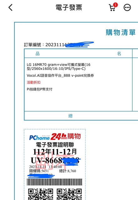 2023年11月購買於PCHOME24H