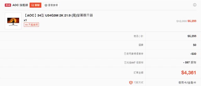 標題[賣/新北/自取] AOC U34G3M 34吋21:9螢幕
