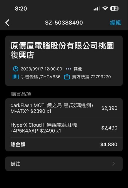 3.2023/9/17 買機殼購入 保固三年 有電子發票