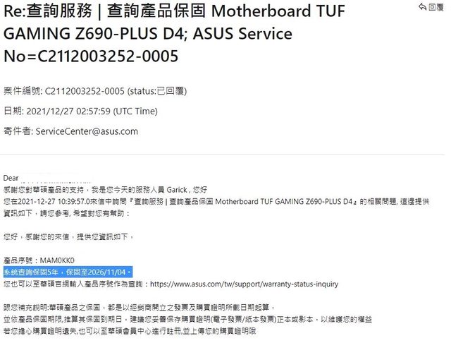 3. 2021/11/22購買 已註冊5年保至2026/11/4 升級平台換下