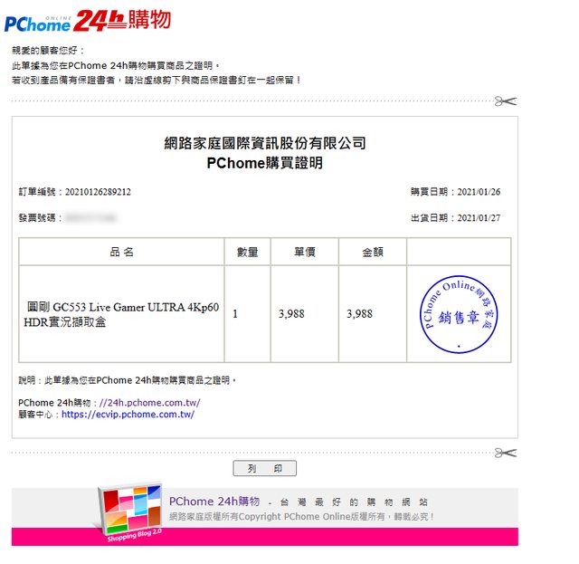 pchome 2021/01/26 購入