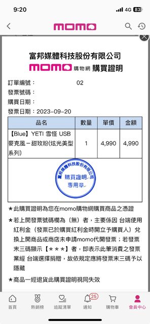 硬體型號:Blue Yeti 雪怪 麥克風 甜玫粉