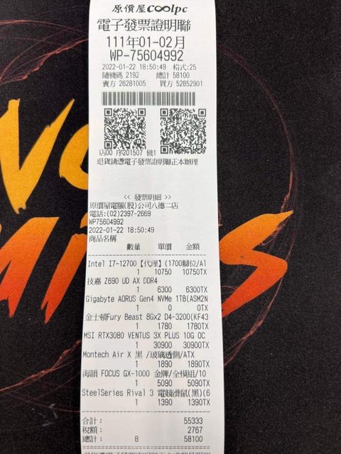 2.2022/2/8原價屋購買,沒有發票,終保