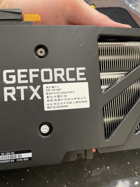 標題[賣/全國/皆可] MSI RTX 3060 ventus 3x 12g oc