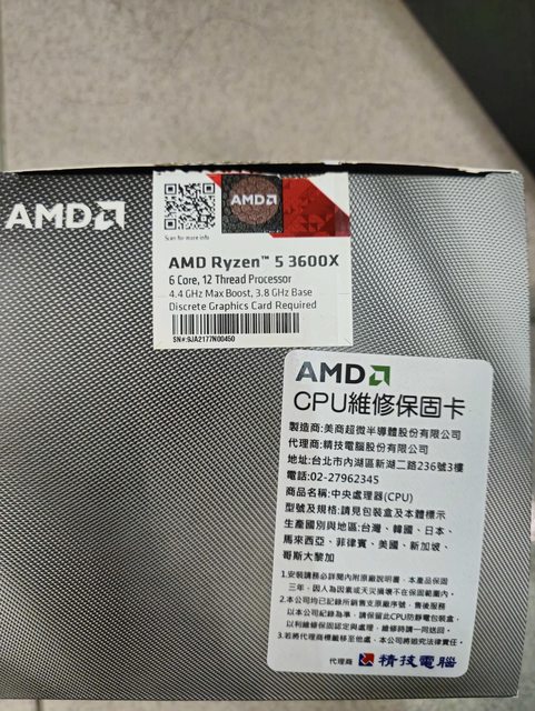 標題[賣/彰化/皆可]AMD 3600X CPU