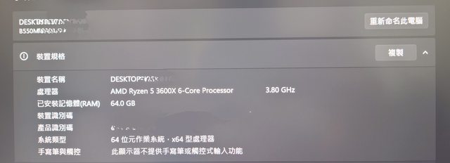 ◎硬體型號:AMD Ryzen5 3600X CPU