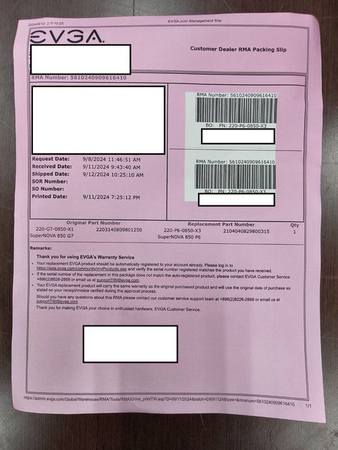 送修後升級EVGA SuperNove 850 P6