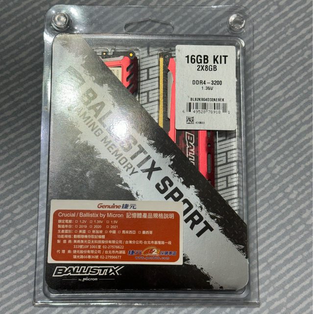 3. 美光 Ballistix Sport LT 競技版 DDR4 3200 16G ( 8G*2雙通道 )