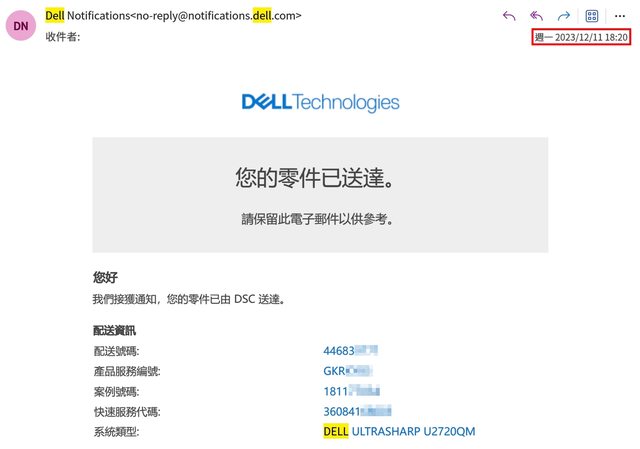 購買日期為2021/10/30_U2720QM,後續於2023/12/11 RMA回U2723QE