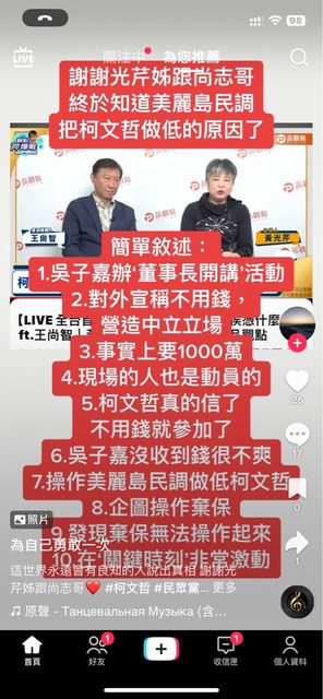 不像柯 60以上,是個位數