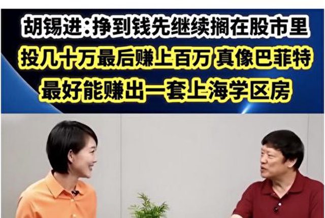胡錫進還透露,當天下午參加一個會議,旁邊一位女教授說,「大約8年前進的股市,投