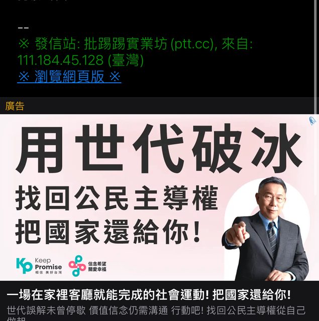→ toshizo: 說支持者自發幫忙登廣告不就好了? 39.12.48.181 12/18 10:30