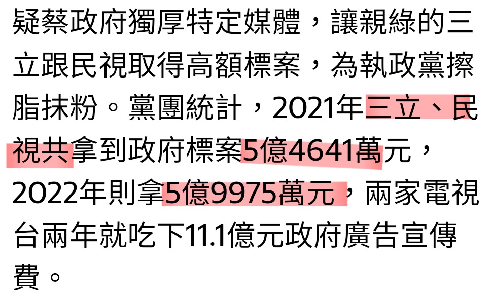 → dreamyello: 三立民視公視第一屆就拿了DPP超過50億 42.79.140.22 12/19 23:12